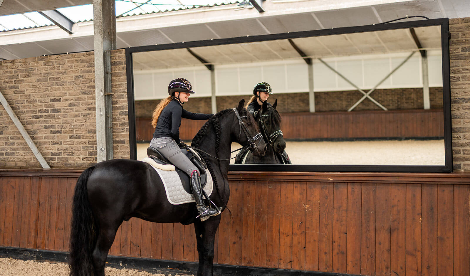Wir sind sehr zufrieden mit unseren neuen Reitspiegeln. Sie helfen unseren Reitern dabei, die richtige Sitzposition zu erlernen. Zudem wirkt die Halle durch die Spiegel viel größer.
